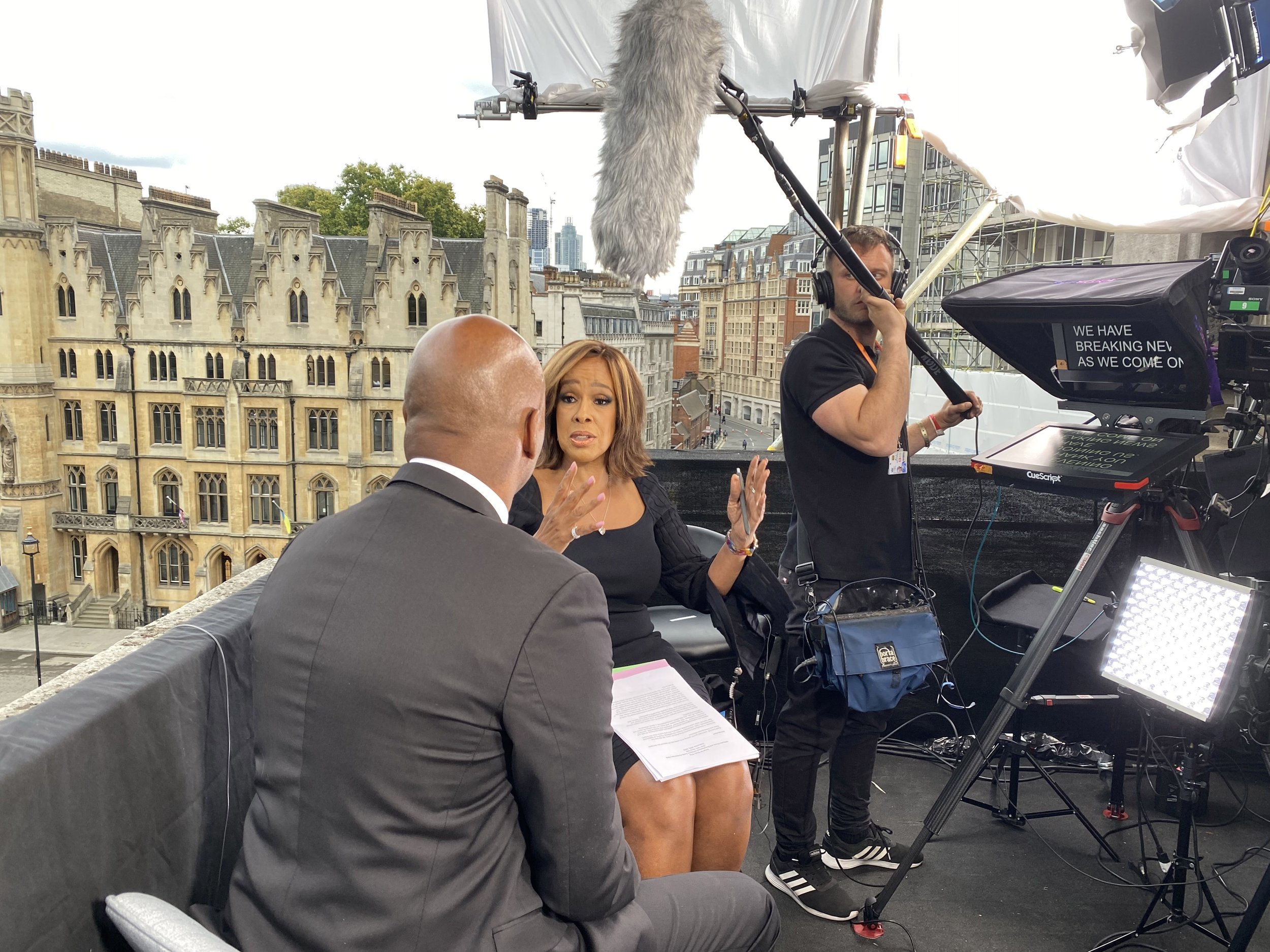 The network set up a platform to host the nightly news— you exchange some time on their stage for an interview with the host. A Live U and a cell phone are lifelines back to the studio. You packed a voiceover mic and an iPad to send photos. The rental car becomes a makeshift VO booth.